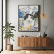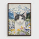 Katt med heterokromi i ett fält med vilda blommor poster