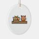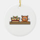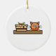Den gulliga och roliga tecknaden av en ljust rödbrun katt tittar en jultårta.