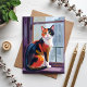 Katt med kalott | Akvarell Fönsterbräda Husdjur Målning Kort