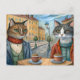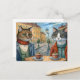 Katt med mat i en café helg vykort