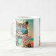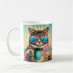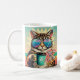 Katt med överdimensionerade solglasögon och kaffe kaffemugg