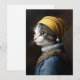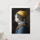 Den här teckningen är en lekfull och kreativ omtolkning av berömden som målar "Girl with a Pearl Earring" av Johannes Vermeer. I den här versionen framställs figur som en elegant katt med en mjuk, uttrycksfull gaze, försedd med en huvudduk av gult och en pärlörring. Det realistiska strukturen päls, kläder och tillbehör blandar klassiska målningstekniker med en vismisk djureffekt som skapar en unik blandning av bra och fantasi.