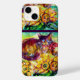 Färgfull, uttrycksfull katt med solblommor akrylmålning av Bulgan Lumini.
