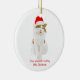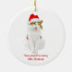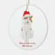 Katt med tomtens hatt julgransprydnad keramik