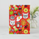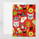 Katt och ägg på rött julkort