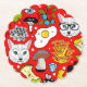 Katt och ägg på rött underlägg papper