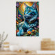 Katt och Blommigt, vit Poster