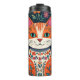 Orange och blåa folkkonst kattunge med blått ögon och blommigtens bakgrundskonst.