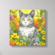 Söt färglös vit katt och blommor gult blommigt art. Ai cat och blommor.