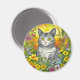 Söt färglös vit katt och blommor gult blommigt art. Ai cat och blommor.