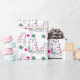 Cute kattunge med rosa- och grönt-blommans vektordesign på vit bakgrund.