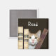 Orange- och vittabby kattjämliken ut från hans bibliotekbokar med rådgivningen som ska läsas, kvadrerar kylmagneten. Bokar png som inhandlas från målat på min Soul för använda