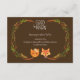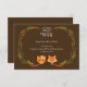 Den här charmerande bröllopsinbjudan innehåller ett välklätt katt- och rävpar omgivet av ett garland med handdragna löv i en arrangemang krans.