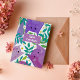 Lila och grönt illustration med katt och löv. Lycklig mors dag för katt mammor. Lycklig-katten mors dag! Bästa mamma-kort för katt.