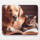 Katt och hund som läser bok musmatta