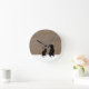 Katt- och hundillustrationsilhouettes på trä rund klocka