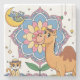 En serenillustration av en kamel och en katt i en islamisk ambians, med varma ökentoner, intrikat arabesque mönster och ett halvljust måne i nattens himmel. Kamellan står på ett beundransvärt sätt, medan katten sitter bredvid den och frammanar en känsla av fred och samhörighet i ett läge i andlig.