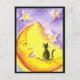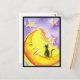 Det här vykortet innehåller vattenfärgsmålningen "Katt och Måne" av konstnären Liz Revit. Njut! Upphovsrätt för image Liz Revit
