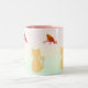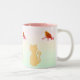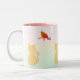 Katt och röd fågel på flerfärgad pastellövertoningsbakgrund mugg.