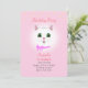 Cute white cat and stars på ljusa rosa tjejen födelsedagsfest inbjudan. Text är redo som ska vara personlig.