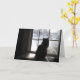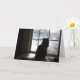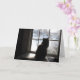 Ett stort kort med en svart katt tittar ut genom fönstret på en mycket snöig scen i Delaware County PA