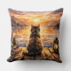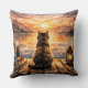 Katt på brygga vid solnedgång kudde
