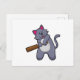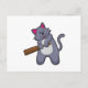 Katt på Cricket med cricketträ Vykort