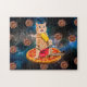 Katt på en pizza som äter is ensam pussel