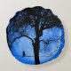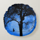 Fantastiskt fullt blå måne med en svart katt på tråd tittar på den