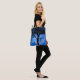 Fantastiskt fullt blå måne med en svart katt på tråd tittar på den