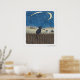 Katt på ett stängsel tittar på natten himlar ovanf poster