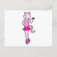 Katt på is skridskoåkning med blomma vykort