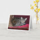 Katt på Red Cushions Greeting Card. Du kan enkelt anpassa den här produkten gratis om du vill lägga till text eller ändra färg i bakgrunden.