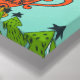 En arbetsytekonst skrivs ut med en bild av en dålig orange katt sitta i tekopp. Vingar vintern hatt och halsduk. Snöflingor faller mot en ljust grönt bakgrund.