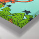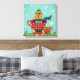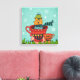 En arbetsytekonst skrivs ut med en bild av en dålig orange katt sitta i tekopp. Vingar vintern hatt och halsduk. Snöflingor faller mot en ljust grönt bakgrund.