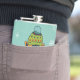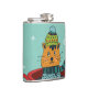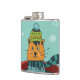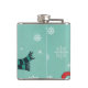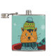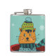 En kolv med en bild av en dålig orange katt sitta i tekopp. Vingar vintern hatt och halsduk. Snöflingor faller mot en ljust grönt bakgrund.