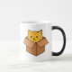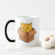 Katt sitter inuti kartonglåda magisk mugg