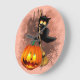 Katt Skrämt med pumpkin Roligt Halloween-tecken Stor Klocka