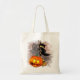 Katt Skrämt med pumpkin Roligt Halloween-tecken Tygkasse