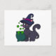 Katt som häxa med trollkarlsgryta vykort