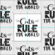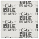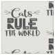 Ett trendig och ett vackert mönster med ord "Katt styr världen" i svart typsnitt, dekorerat med vita whiskers, kattrepor, en liten mus och lite tass.