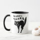 "Min människa är konstig". Svart silhuette mugg-design för kattälskaren. Galet, men sött!