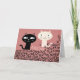 SVARTA OCH VITA KATTER SOM SER PÅ VARANDRA, KORTET HAR RÖSAKROS BACKGROUND OCH STÅR KÄRLEK ÖVER ALLA PLATS, OCH OCKSÅ JAMMAR NÅGRA GÅNGER. INUTI STÅR "KÄRLEK VID FÖRSTA JAMNINGEN"