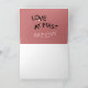 SVARTA OCH VITA KATTER SOM SER PÅ VARANDRA, KORTET HAR RÖSABAKGRUND OCH STÅR KÄRLEK ÖVER ALLA PLATSER, OCH MEJAR OCKSÅ NÅGRA GÅNGER. INUTI STÅR "KÄRLEK VID FÖRSTA MEJAU"