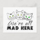 Vi är alla Mad här och teckning på tre lustiga katt ansikte med gult och grönt öga. Horisontorienterade produkter eller produkter och souvenirer för bredd- eller landskapsproportioner