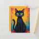 Det här infångande vykortet har en charmerande svart katt med en meriserande grönt ögon som verkar gleam med nyfikenhet och spelsamhet. Dess rosa näsa och ömtåliga whisky tillför en trevlig beröring, medan det intrikata mönster på dess päls skapar en texturerad och konstnärlig dragningskraft. Bakgrunden brinner med energi och viskhet och visar en fantastisk blandning av varma gulter och orangar vid sidan av lugnande blues. Den är försedd med vita blommor och stjärnor som ger en magisk, drömliknande kvalitet. Det här söta vykortet är perfekt för att skicka anteckningar eller hälsning till kattälskare eller konstentusiaster.