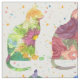 En färglös kattväv med katthylletter i en profil som är målad med vattenfärgsblomma mönster i en mängd olika färg med vattenfärgspatter och fläckbakgrund.