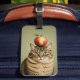 En konstig katt med äppelbalansering ovanpå hans huvud.