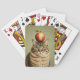 En konstig katt med äppelbalansering ovanpå hans huvud.