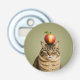 En konstig katt med äppelbalansering ovanpå hans huvud.